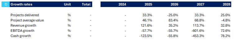 In this section, we summarise some of the key financial indicators of the business over the forecast period. We do this using averages, growth rates and ratios.
